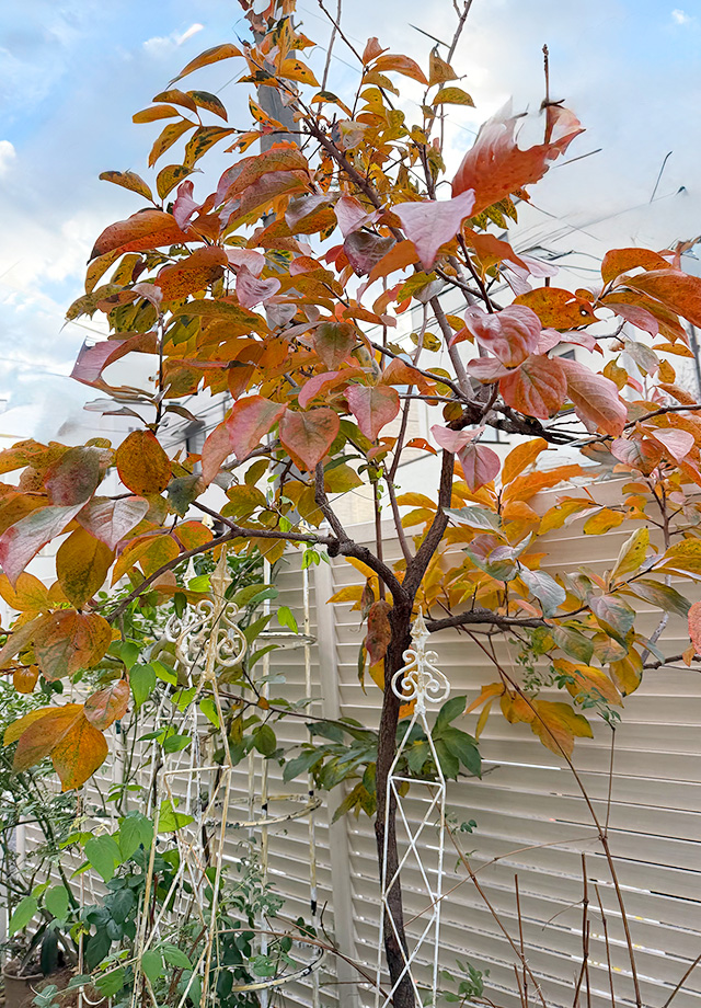 園児達の成長をいつも見守っていた園舎前の大きな柿の木。長男が持ち帰った甘い柿を美味しくいただいた後、大好きな園生活の思い出をいつまでも、との気持ちで家の植木鉢に種を埋めたのは5年前。海外駐在中は実家に預け、引っ越す時も一緒に連れてきた柿の苗は順調に育ちました。新しい庭で最近急成長し、綺麗な紅葉を披露しいくつか実もつけてくれるよう様になりました。長い年月を経て、気付けば驚く成長を見せてくれる柿の木はまるで子育ての様です。