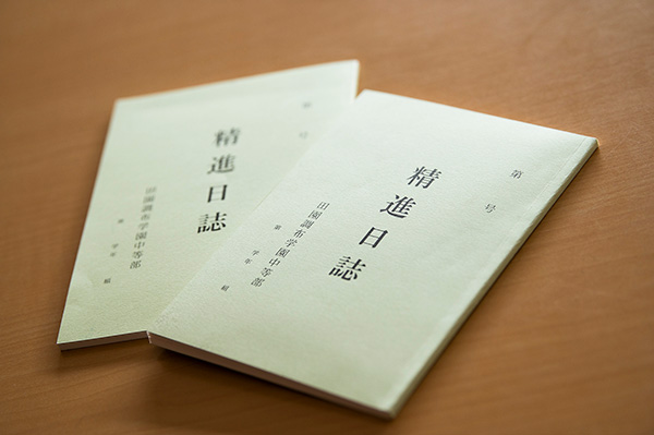 「今日一日の自分」を見つめて書きます。一日の生活を振り返って、感じたこと、考えたことを書き、担任に提出します。書くことは考えることであり、「なりたい自分」の指針になっていきます。