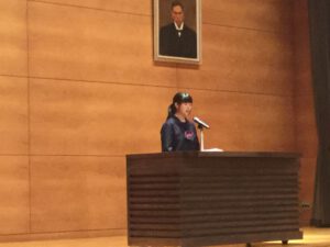 代表者10人それぞれが土曜プログラムで学んだことや考えたことを個々の言葉で発表しました。クラスの代表ということもあり、内容や発声、発表の仕方にたくさんの工夫が見られました。発表者だけでなく、発表を聞いた私達も成長できるきっかけになったと思いました。
