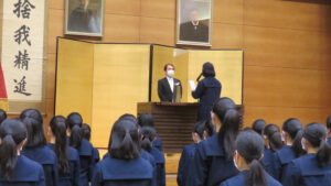 代表の生徒は「捨我精進の心に恥じぬよう、学び励みます」と宣誓をしました。