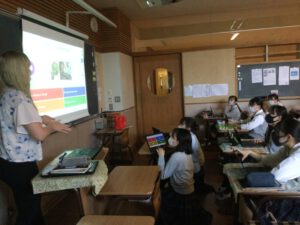 中等部2年生は6月に校外学習で鎌倉を訪れる予定です。緊急事態宣言の状況によっては実施できるかまだわかりませんが、英会話の時間では、現在オリジナル鎌倉紹介スライドの作成を進めています。プレゼンテーションの対象を「小学生」「家族連れ」「年配のご夫婦」「出張で訪れたビジネスマン」など細かく分けることで、それぞれが少しずつ異なる観光スポットやおみやげを取り上げ、英語で説明を加えています。この日は最近学んだ不定詞を使った鎌倉4択クイズも行い、大いに盛り上がりました。今後も行けることを願いながら、楽しく英語で鎌倉を学んでいきます。(中等部2年 英語科 平福)