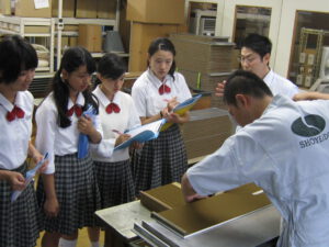 私たちの班は京都デニムを見学しました。着物に使われている友禅染の技術を、気軽に着ることが出来るデニムに用いることで、昔からの伝統を受け継ぐということを知りました。とても大切なことだと思いました。