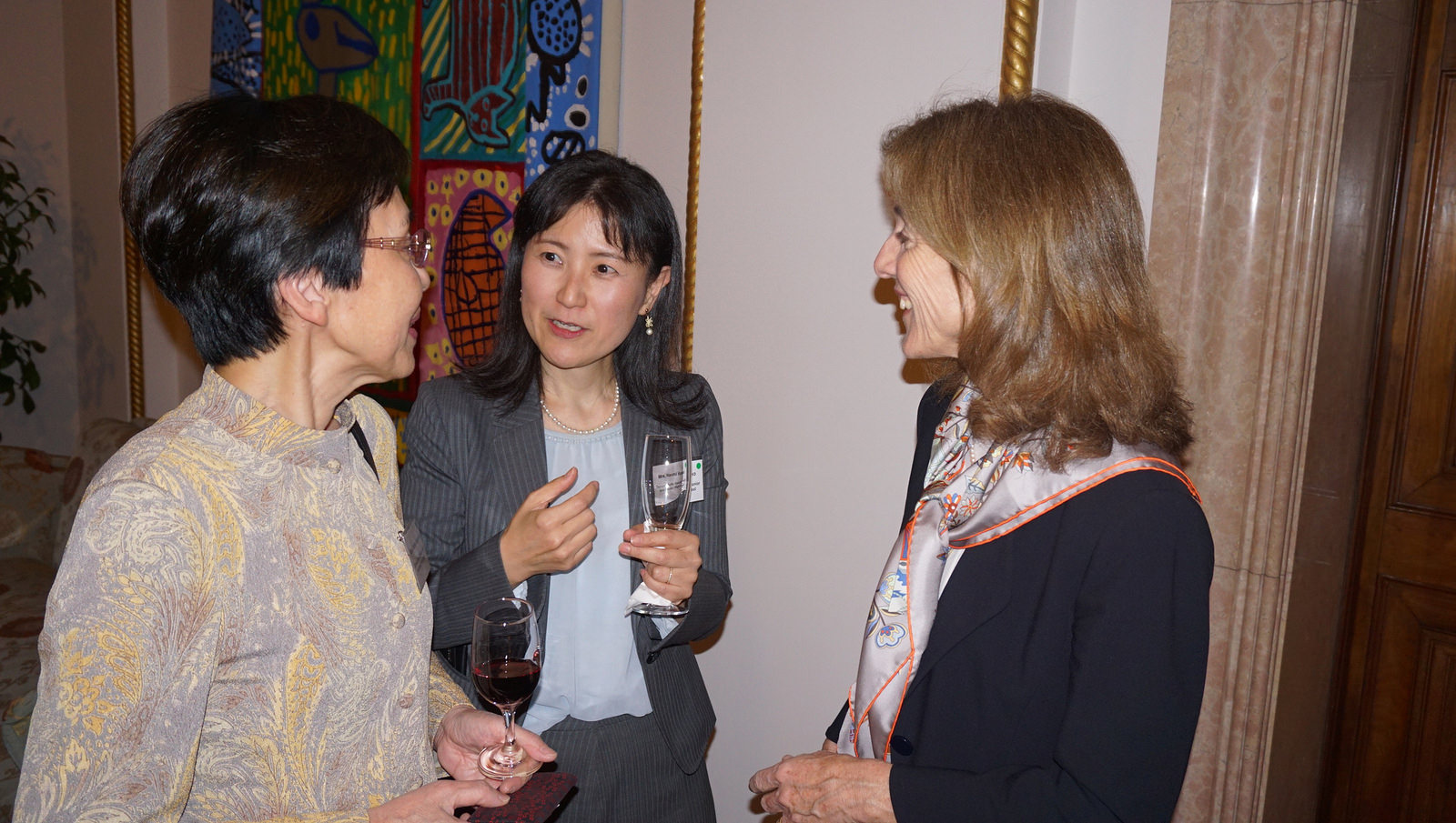 米国大使館からの招待を受けて、11月19日にケネディ大使公邸で行われた、アメリカ留学啓蒙レセプションに西村弘子学校長と進路指導部長の兼子が参加しました。20校ほどの高校の校長・教員を対象に、各界の若手リーダーとなっているアメリカの大学卒業生や、フルブライト奨学生等の支援団体関係者との情報交換、懇親を目的としたものです。 キャロライン・ケネディー大使をはじめ多くの方と交歓ができました。今後のグローバル教育・留学推進に生かしていきます。