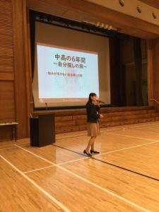 最初に「どうしてここにいるのか」という哲学的な問いから講話が始まりました。この場にいられる、ということをどう引き受けていくか、を考えてほしいとのことでした。