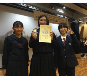 “Junior 1, Junior 2, and Junior 3 students went to the 23rd Kiyotada Tazaki Trophy Private Junior High School English Recitation Contest on Sunday, November 9, at Komagome Gakuen Junior & Senior High Schools. More than 40 students representing fourteen schools from Tokyo, Chiba, Kanagawa, Okinawa, and Toyama participated in this year’s contest. Each student said they were very nervous to perform their recitation but when they went on the stage, they did their best and showed impressive confidence.