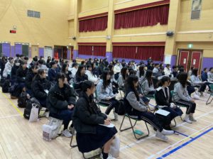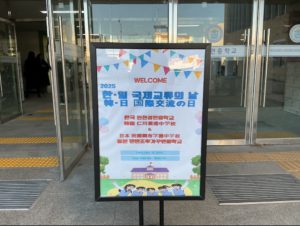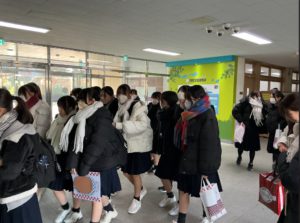 今日は全員で制服を着て、身支度を整えてバスで仁川Gyeong-Yeon(キョンヨン)中学校へ。韓国の中学校と本校の学校交流です。