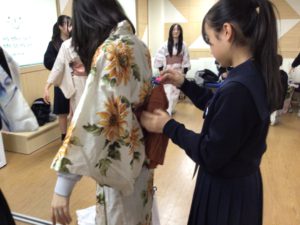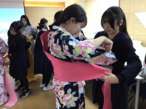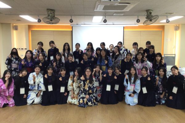 午後は、キョンヨン中学校のバンド部による演奏を聞いたのち、日本文化体験を実施しました。生徒たちはこの日のために浴衣の着付けを練習したり、けん玉を練習したり、お昼休みのミーティングを重ねてそれぞれに準備をしてきました。キョンヨン中の皆さんの笑顔が見られて、生徒たちもとても嬉しそうでした。