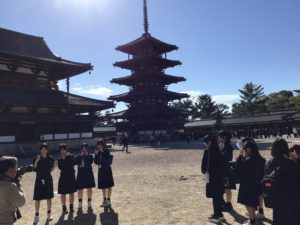 明日は東大寺から興福寺へ向かいます。生徒は文化遺産と同じくらい(それ以上?)、奈良公園のシカを楽しみにしているようです。