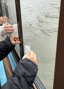 周遊では人形(ひとがた)流しも体験しました。