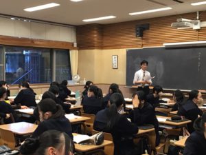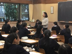 本校では、中等部1年で週に1時間「礼法」の授業があります。これは創立以来の建学の精神や作法をを伝える授業ですが、今年度からは複数の教員が担当をしています。
