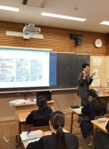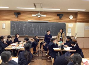 「集団の一員であることを楽しもう」をテーマに授業を行いました。「如是集」の「反対がなければこちらが成り立たぬ。故に反対は憎むべきでなく、感謝すべきである。此の広い心が生まれた時、はじめて一如の人となることが出来る」という一説を読み解いた後、まずは自分たちが属する最も身近な集団である“家族”のルールを友人同士で共有しました。同じ家族でも「当たり前」が違うことに気づき、意見の対立は自然なことだと実感。対立を乗り越え、互いの良さを組み合わせてよりよい考えを生み出す「アウフヘーベン」の考え方を学びました。さらに「熊を駆除すべきか」という課題について、駆除と保護の両立を探るグループ討議にも取り組みました。