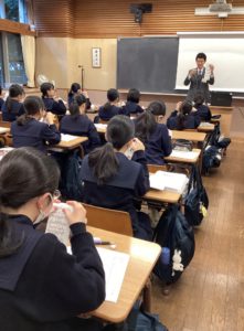 1年前(中学受験に向けて勉強を頑張っていた時期)を振り返り、この1年間での自身の成長を振り返りました。「如是集」の一説に全心身をかけて取り組むことの大切さが書かれています。中高6年間で一生懸命取り組むことを意識して生活してほしいと思います。最後にこれから受験をむかえる受験生に向けてのメッセージカードを作成しました。1年前の自分を振り返ることで、相手の気持ちを考え、気持ちのこもったメッセージを書きました。