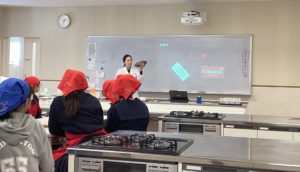 最初になぜ、医学部の教授が食育活動を行っているのか、病気になりにくい身体を作ることと食事は切れない関係であること、遺伝子をも変えることができる食べ物の持つ力、医療の未来について生徒たちと対話形式でお話しを頂きました。