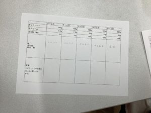 こうして完成した5種の水分量の違うガナッシュを実際に試食し、見た目や味、舌ざわりなどを比較しました。