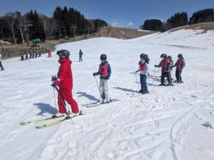 今年度もスキー教室の季節がやってきました。朝は雨がちらついていましたが、少しずつ晴れ間が広がり、汗ばむ陽気となりました。