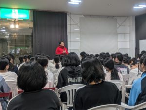 夕食後には全体でのミーティングが実施され、スキーに関する基礎知識や理論について学びました。明日から始まる本格的な講習に向けて、一つひとつ吸収していってほしいと思います。