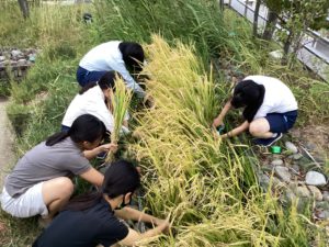 理化部 活動報告 ~水田型ビオトープでの収穫を終えて~