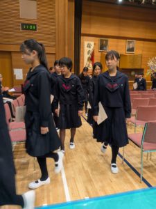 制服のリボンの色が変わった高等部の生徒たちは、一層引き締まった表情で参加していました。