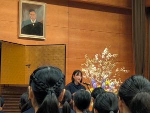 生徒会を代表して中等部3年生からは、「勉強と部活動緒の両立は大変ですが、乗り越えていけます。これからの新生活をいっしょに楽しみましょう。」と歓迎のことばが贈られました。