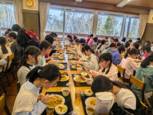 本日、4月22日(水)から中等部一年生の体験学習が始まりました。生徒たちはバスで学校を出発し、昼頃、長野県にある板橋区立八ヶ岳荘に到着しました。