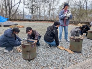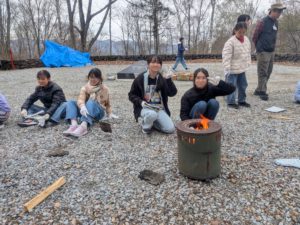 ・野外炊事の時に、 教科書に書いてあった木の組み方を試したところ、本当にうまく火が付き、嬉しかったです。 カレーもとてもおいしくできました。