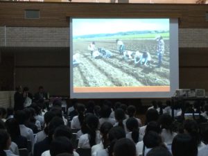 実行委員長の土田さんは、過去の先輩たちの農作業の様子、昨年度の作業を写真を交えて紹介して下さいました。