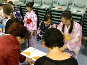 金曜日には、感謝の気持ちを込めてフェアウェル・パーティーを行いました。今回は、私たちがホストで、ホスト・ファミリーがゲストです。浴衣で、ゲストをお出迎えし、おもてなしをしました。