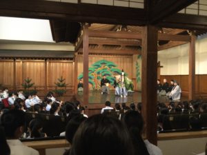中1・2は演劇鑑賞(本校講堂)、中3は歌舞伎鑑賞(各劇場)、高1は文楽鑑賞(各劇場)、高2は能狂言鑑賞(能楽堂)、そして高3はミュージカル・演劇鑑賞(各劇場)をします。